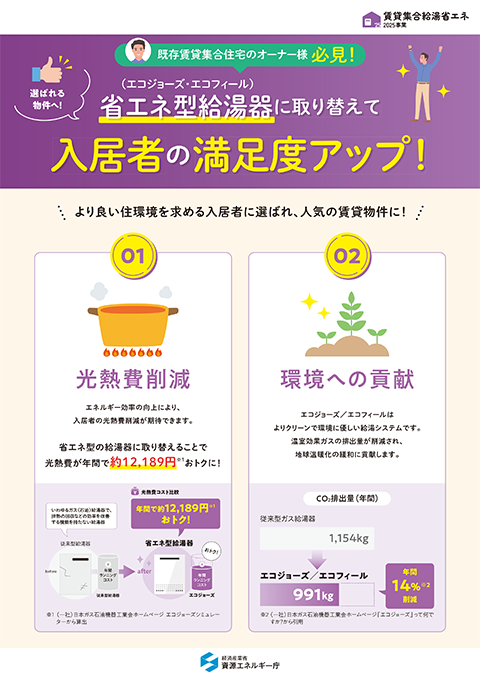 省エネ型給湯器に交換することで賃貸オーナー様や入居者様が得られるメリットや、